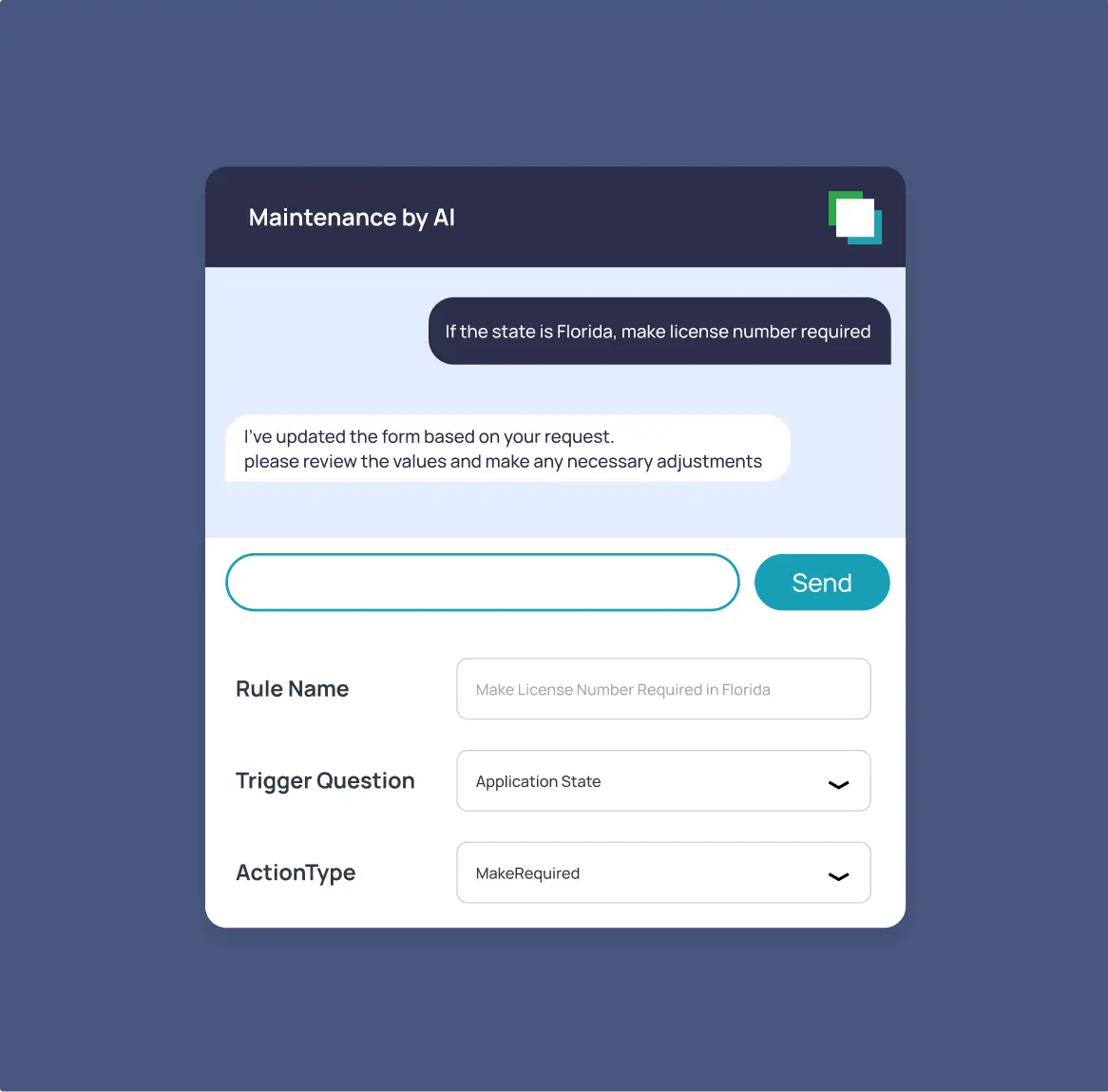 Update workflows in plain English. InfrasAI automates and syncs rule changes across systems instantly — eliminating rework with human oversight.