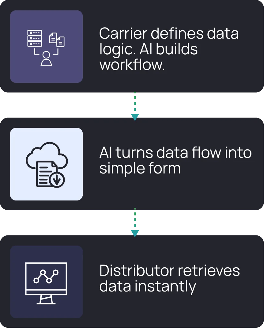 With Build Copilot, carriers build once and reuse the workflow across distributors.